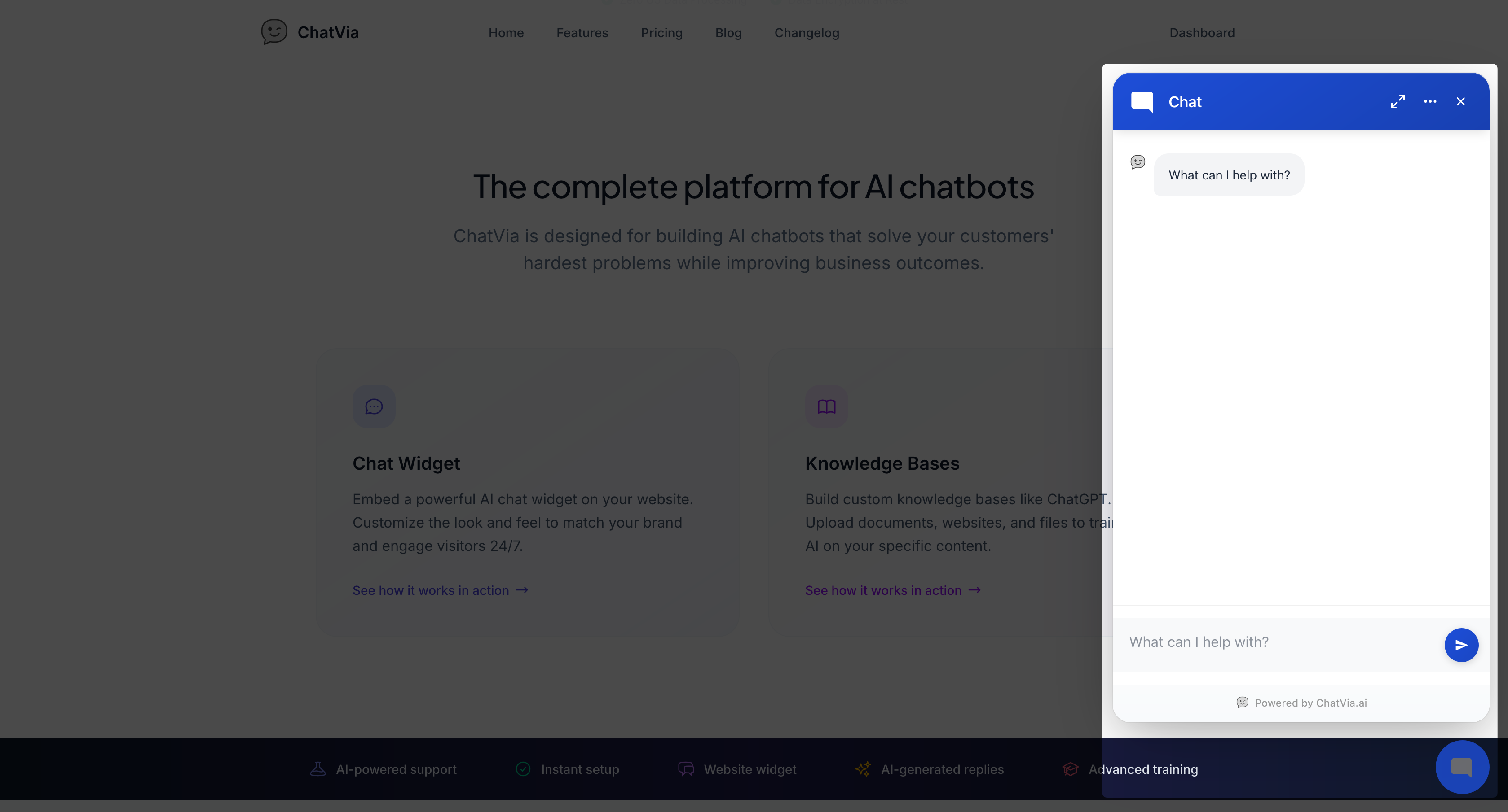 ChatVia is designed for building AI chatbots that solve your customers' hardest problems while improving business outcomes.